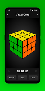 ลูกบาศก์เสมือน ให้คุณเล่น เรียนรู้ แก้ไข และติดตามเวลาแก้ปัญหาได้อย่างแม่นยำ คุณสามารถใช้รูปแบบที่กำหนดไว้ล่วงหน้าหรือแบบกำหนดเองกับ Virtual Cube และจัดการ Virtual Cube โดยใช้อัลกอริทึมของคุณเอง คุณยังสามารถเรียกใช้ Fridrich หรือ Advanced Solver บน Virtual Cube ได้โดยตรง