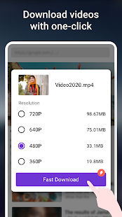 ก่อนดาวน์โหลดวิดีโอคุณสามารถเปลี่ยนชื่อไฟล์วิดีโอและเลือกเส้นทางการดาวน์โหลดด้วยตัวจัดการไฟล์ในตัว ในหน้าดาวน์โหลดวิดีโอคุณสามารถตรวจสอบความเร็วและความคืบหน้าในการดาวน์โหลดหยุดเล่นต่อชั่วคราวและลบวิดีโอที่ดาวน์โหลดออก ในหน้าวิดีโอที่ดาวน์โหลดคุณสามารถตรวจสอบเส้นทางวิดีโอที่ดาวน์โหลดมาคลิกรายการเพื่อเล่นวิดีโอออฟไลน์ด้วยเครื่องเล่นวิดีโอ HD ในตัว