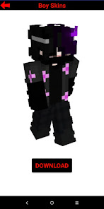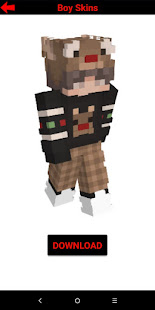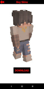 แต่ละสกินคุณสามารถดาวน์โหลดได้ฟรีเพียงแค่กดปุ่ม! The Boy Skins สำหรับ Minecraft PE นั้นใช้งานง่าย: