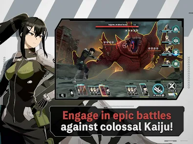 มีส่วนร่วมในระบบการต่อสู้แบบเทิร์นเบสที่ใช้งานง่ายซึ่งเต็มไปด้วยกลยุทธ์เชิงลึก! เลือกทักษะของเจ้าหน้าที่กองกำลังป้องกันเพื่อโจมตี และเมื่อแกนกลางของ Kaiju ถูกเปิดเผย ปล่อยการโจมตีขั้นสุดยอดทำลายล้างเพื่อส่งการโจมตีครั้งสุดท้าย!