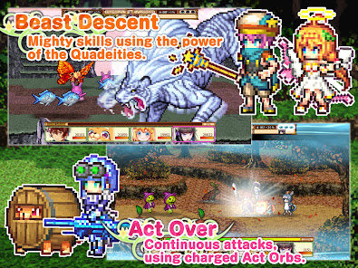 Make use of up to three roles per character to enjoy the variety in skills, effects and even costumes. In turn-based battles you can charge special orbs to use Act Over and launch up to four continuous actions. It's fun just to watch the charm of pixel arts in this fantasy JRPG!