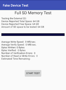 The included Full SD Memory Test will identify defective and fake External SD cards. This test is more thorough than other SD memory testing apps because it verifies that every bit in the SD card's free memory space can be both set and cleared. We do this with two passes of test data which will set, clear, and verify that every memory bit is fully functional. Other SD testing apps typically perform only a single pass test, and are only testing half the memory bit states (either set or cleared), and therefore are only 50% accurate and reliable. Running a single pass SD testing app multiple times will still not verify all the memory bit states, because the test data must be specially formulated to set and clear each bit in the memory. Our test does this and is 100% accurate and reliable.