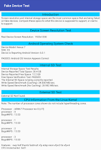(Important Update) - We received a report that some of the newer fake devices may be blocking the install of this app in their firmware to avoid detection. This app will install on any device from this play store listing. If you are unable to install this test, then the device itself is blocking the install, which is proof the device is fake and is purposely blocking the install to avoid detection. Such devices should be returned immediately for a refund, because you are being scammed. Everyone should insist on being able to install this test to check their device's authenticity, and demand a full refund for any device that is blocking your rights to do so.