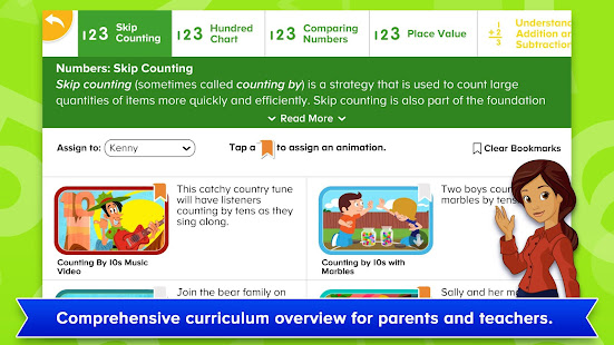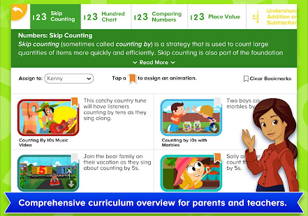พ่อแม่ผู้ปกครองจะได้รับประโยชน์จากส่วนสำหรับพ่อแม่ที่อธิบายถึงแนวคิดหลักในวิชาคณิตศาสตร์และการแก้ปัญหาสำหรับผู้เรียนหนุ่ม รายละเอียดนิเมชั่นช่วยให้ผู้ปกครองมุ่งเน้นความต้องการของเด็กและผลประโยชน์ที่พวกเขาเลือกภาพเคลื่อนไหวสำหรับเด็กของพวกเขาเพื่อดู