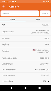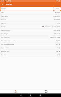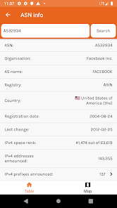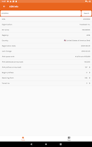 'ASN info' - displays quick statistics about any ASN around the globe, with detailed information about the currently held public IP address space, estimated service area with map visualization and adjacent connections to other ISPs.