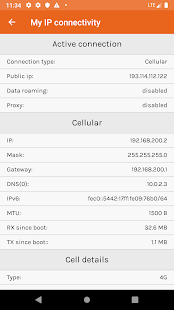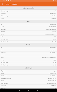 'My connectivity' - displays current connectivity status, public IP, DNS servers, Wi-Fi and cellular network information.