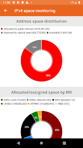 'IPv4 space monitoring' - presents an opportunity to present current distribution, utilization, and availability of public IP addresses between regional internet registries (RIRs).