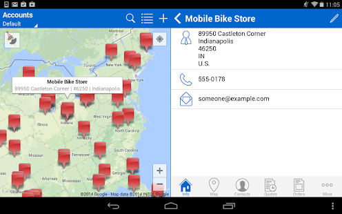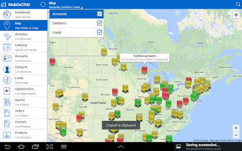 • Interactive maps that display accounts, contacts, activities and other types of records