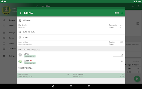 - ป้อนสถานที่ คะแนนต่อผู้เล่น และรายละเอียดอื่น ๆ อีกมากมาย