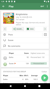 - โพสต์บทละครของคุณไปที่ BoardGameGeek (BGG) รวมถึงการโพสต์อัตโนมัติหลังจากบันทึกแต่ละครั้ง