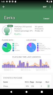 - ดูสถิติสำหรับแต่ละเกมและผู้เล่นและชุดค่าผสม