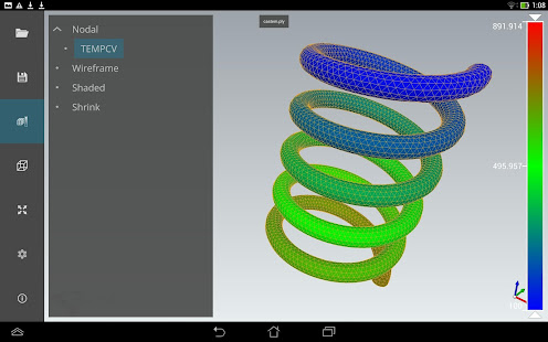 CAD Assistant ช่วยให้คุณดูตาข่ายในมุมมองโครงร่างแรเงาและลดขนาด หาก mesh มีพื้นผิวสีหรือข้อมูลสเกลาร์ที่เกี่ยวข้องก็สามารถดูได้ด้วยองค์ประกอบที่มีสีตามคุณสมบัติที่เลือก สำหรับสเกลสีเชิงโต้ตอบปริมาณสเกลาร์จะแสดงให้ควบคุมเพื่อปรับแต่งช่วงของปริมาณที่แสดง