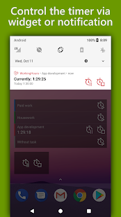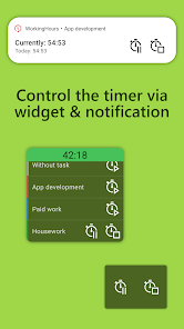 • เริ่ม/หยุดชั่วคราว/หยุดเวลาทำงานโดยไม่ต้องเปิดแอป - ผ่านวิดเจ็ต & การแจ้งเตือน