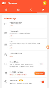 การบันทึกวิดีโอนี้มอบวิดีโอที่มีคุณภาพสูงและการตั้งค่าที่ปรับแต่งได้ซึ่งรองรับวิดีโอ HD ทั้งในแนวตั้งและแนวนอน ด้วยแอปบันทึกหน้าจอนี้ คุณสามารถเปลี่ยนการตั้งค่าวิดีโอได้ทันทีเพื่อตอบสนองความต้องการและการบันทึกวิดีโอที่คมชัดของคุณ