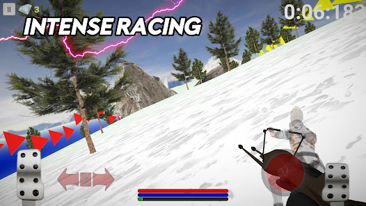 Race your hovercraft bike through various terrains and climates on point-to-point race tracks while avoiding trees and boulders.