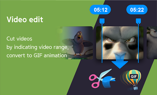 - Cut videos by specifying the range of the video, or convert them to GIP animation