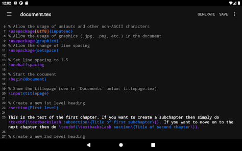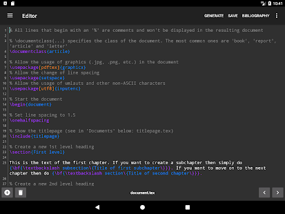 VerbTeX เป็นโปรแกรมแก้ไข LaTeX ที่ทำงานร่วมกันได้ฟรีสำหรับอุปกรณ์ Android ของคุณ ช่วยให้คุณสร้างและจัดการโปรเจ็กต์ LaTeX ได้โดยตรงบนอุปกรณ์ Android ของคุณ และสร้าง PDF โดยใช้ Verbosus (Online LaTeX และ Octave Editor)