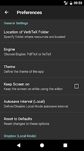 * 2 โหมด: โหมดท้องถิ่น (จัดเก็บเอกสาร .tex บนอุปกรณ์ของคุณ) และโหมดคลาวด์ (ซิงโครไนซ์โครงการของคุณกับ Verbosus)
