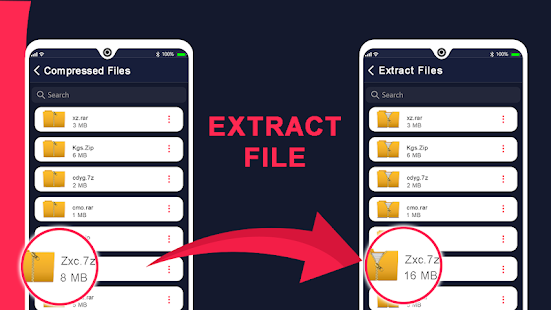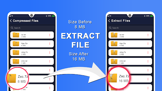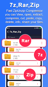 6) zip unzip file extractor: zipunzip ที่รวดเร็วบีบอัดไฟล์ที่เก็บไว้หลังจากการบีบอัดจะถูกเก็บไว้ในส่วนขยาย in7z บนโทรศัพท์ Android ของคุณ
