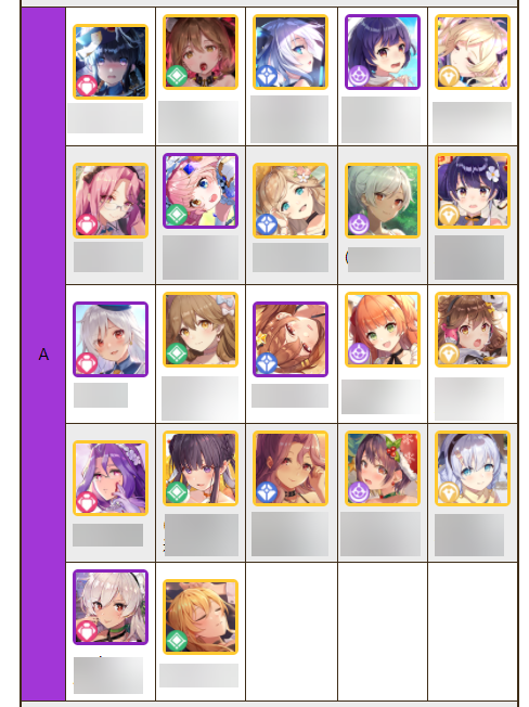 1. อันดับความแข็งแกร่งของตัวละคร · พลังโจมตี · S – A